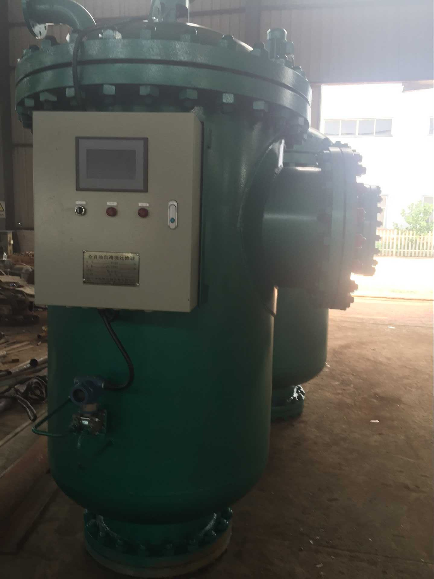 全自動濾水器在正常過濾狀態(tài)時,電動減速機處于停用狀態(tài),排污閥處于關閉狀態(tài)。水從進口進入濾水器筒體內(nèi),產(chǎn)生壓力,隨著過濾的連續(xù)進行,雜質(zhì)附著在濾網(wǎng)面上,壓力差會逐漸升高,當壓力差達到設值時,全自動濾水器進入自動清洗狀態(tài),電動減速機啟動按設定轉(zhuǎn)速帶動濾網(wǎng)芯,電動排污打開,此時雜質(zhì)將會與3%的耗水量經(jīng)排污口排出管路系統(tǒng),全自動濾水器完成自動旋轉(zhuǎn)、自動清洗、自動排污,PLC指令停止電動減速機運行,關閉電動排污閥,過濾系統(tǒng)正常運行過濾工作,等待進入下一自清洗循環(huán)。不同的濾網(wǎng)適用于不同的過濾精度(采用不銹鋼板開孔制作過濾網(wǎng),具有強度高,使用周期長,安全系數(shù)高等優(yōu)點)。PLC控制系統(tǒng)可根據(jù)用戶要求進行修改設計,并可以與LCU機房、DCS系統(tǒng)聯(lián)網(wǎng)運行,同時還可以現(xiàn)場手動操作等控制。自動濾水器配備有報警系統(tǒng),以保障過濾系統(tǒng)的安全運行。